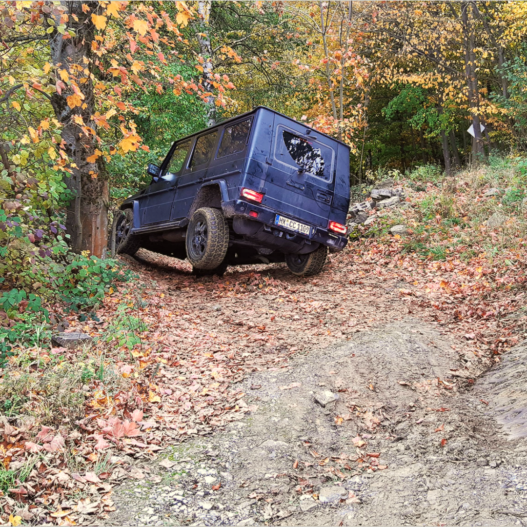 - Schrägfahrten, Steilabfahrten, Schlamm- und Wasserdurchfahrten